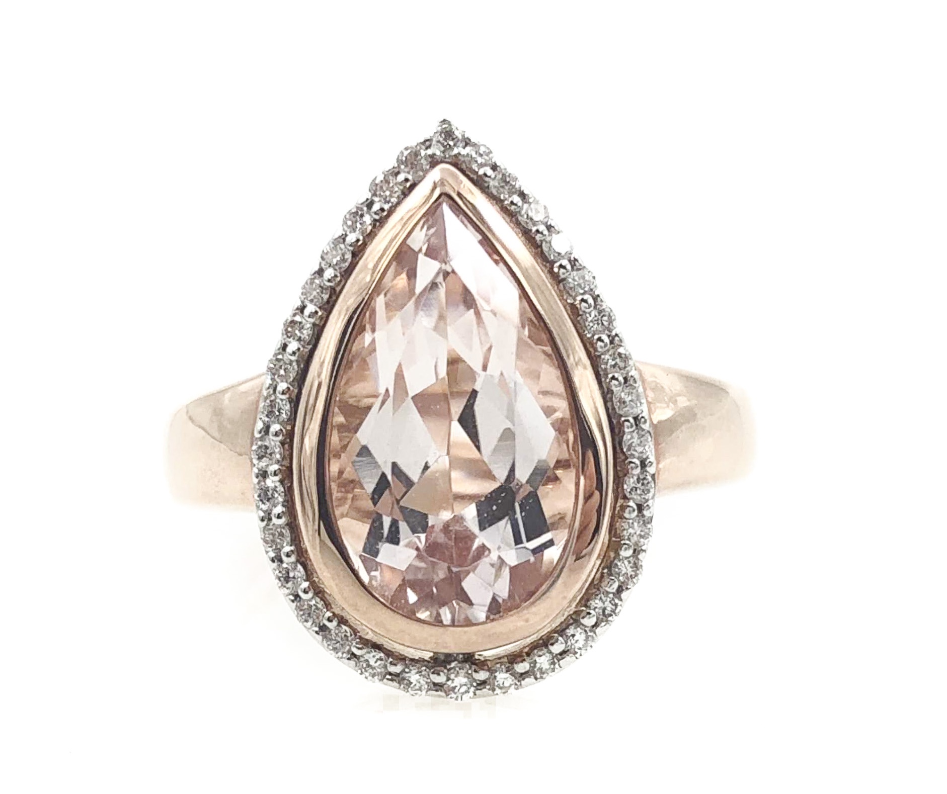 9CT Rose Gold Pear-Shaped Morganite & Diamond Halo Ring